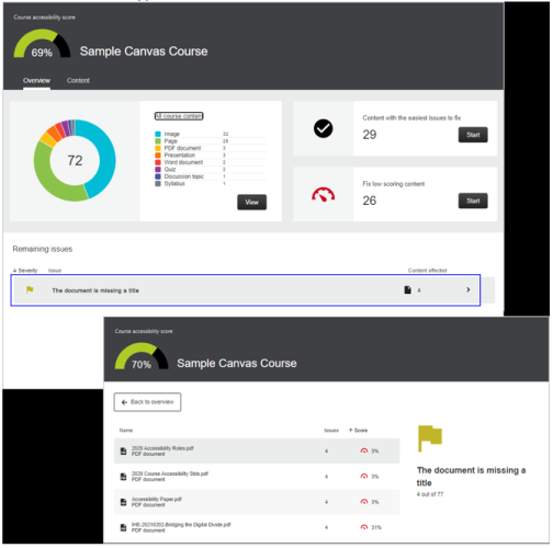 Click on the content affected, and Ally will provide a list of individual files that need attention.