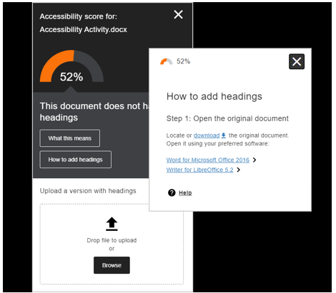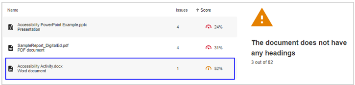 Identify the Microsoft Word documents that do not have headings. Though you’ll ultimately want to address other types of files like PowerPoint slides, Word documents are the easiest place to start. When you’re ready to take on others, Ally will help you through those, too.